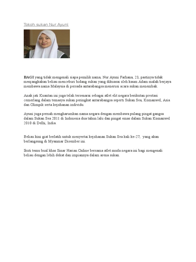 Tokoh Sukan Nur Ayuni Tugas 3 Pdf